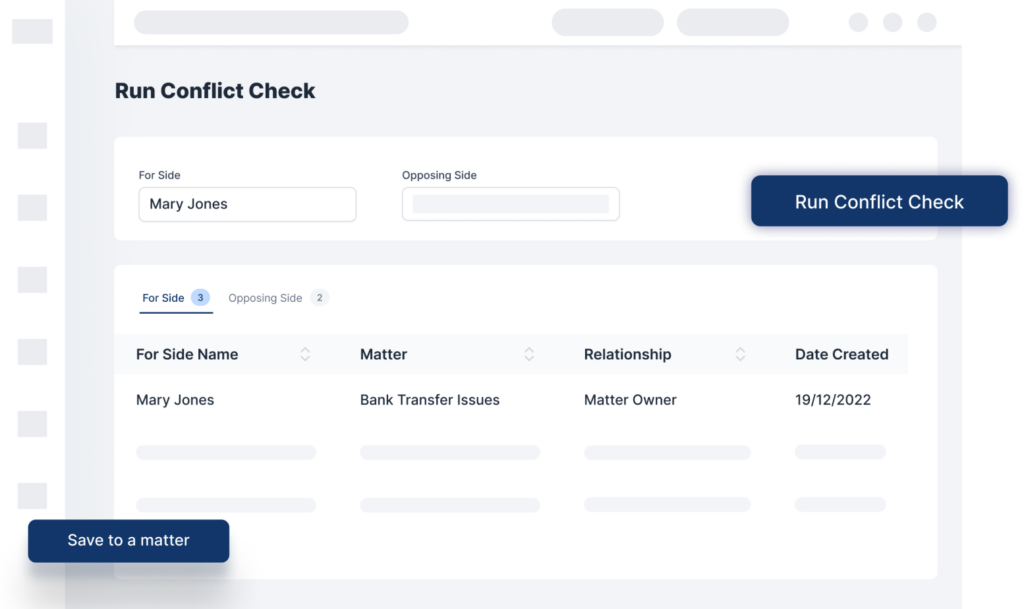 Gain the trust of potential clients with conflict checks declarations. Eliminate potential litigation arising from conflict of interest. Conduct comprehensive checks before onboarding a new client.