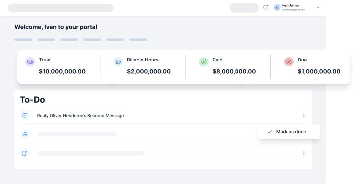 Build and manage a formidable relationship with all your clients. From intake to invoice. Offer the best legal services with our all-inclusive law firm client management software. Onboard new clients. Attract new business. Grow your legal practice.