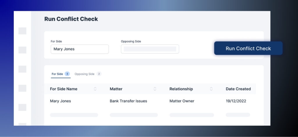Gain the trust of potential clients with conflict checks declarations. Eliminate potential litigation arising from conflict of interest. Conduct comprehensive checks before onboarding a new client.