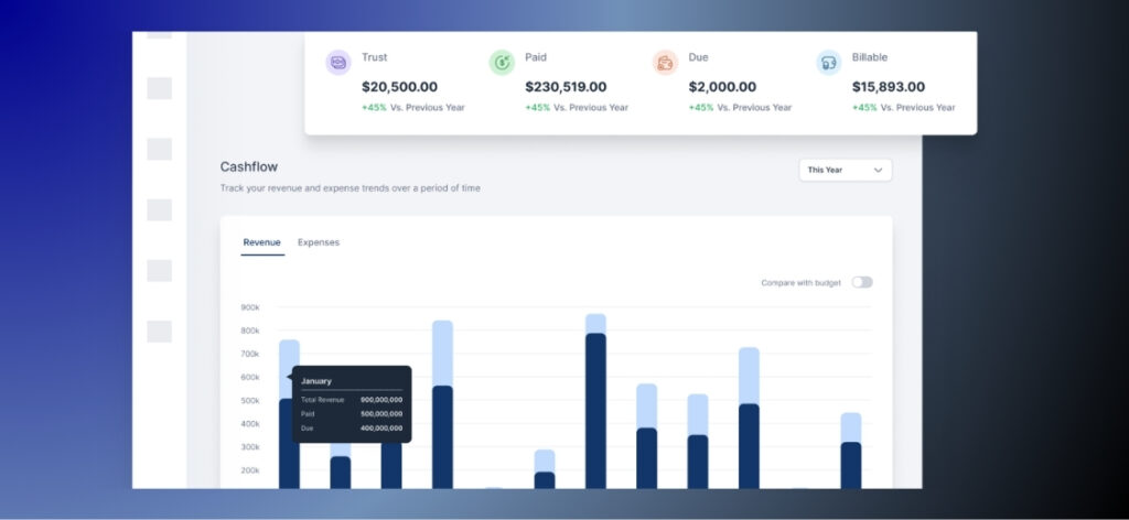 Take control of your firm’s finances with comprehensive accounting tools and insightful reports. No need for integration with other accounting software.