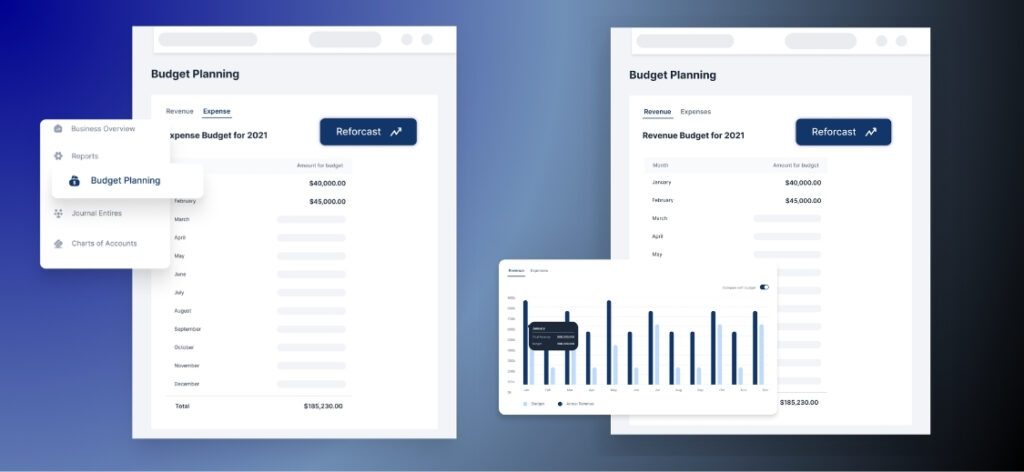 Monitor business performance to plan. Plan monthly revenue and expense budgets. Monitor budgets to actual revenue and expenses.